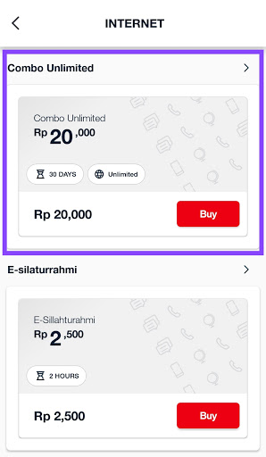 Pelanggan simpati dan juga loop dapat memilih paket yang sesuai pada halaman yang tersedia.
